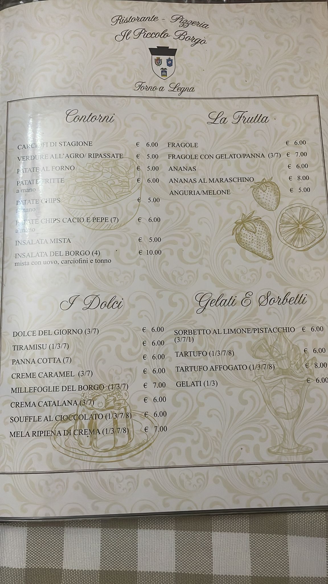 Il Piccolo Borgo offre una vasta selezione di ottimi dessert fatti in casa fra cui: